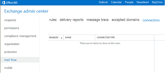2) On the left side navigator menu, select “mail flow” and then select “connectors”.