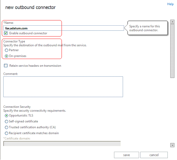 This article focuses on the setup of Exchange online outbound connector. Please refer to the administration guide on how to create fax users using different methods.