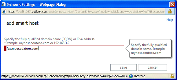 6) On the “Network Settings” window, enter the DNS name or IP address of the ExtraFax server. Click Save.