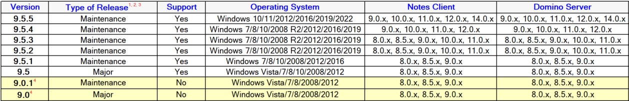 Version  | Type of Release  | Support  | Operating System  | Microsoft Exchange  | Microsoft Outlook  |