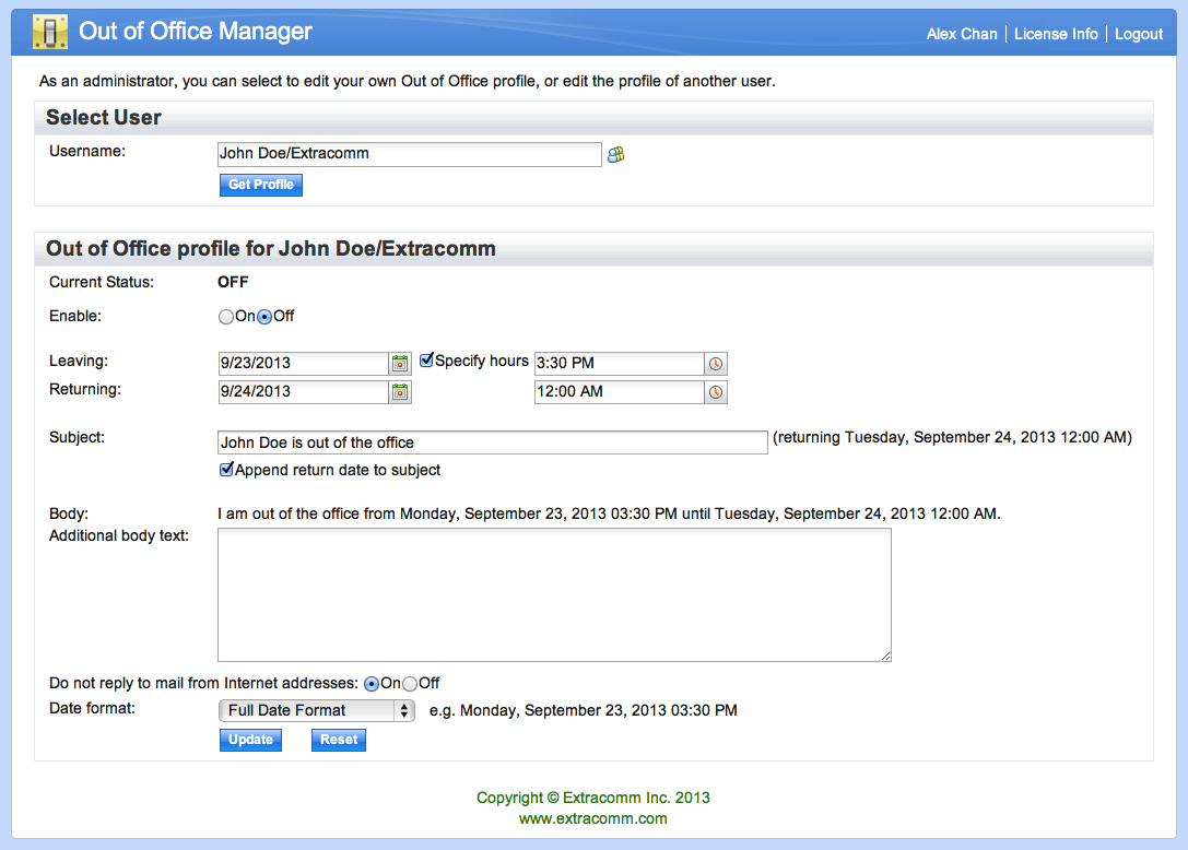 The Out of Office XPages web app for HCL Notes/Domino is part of the Extracomm Out of Office Manager solution. To access your Out of Office profile from other devices, e.g. iPhone/iPad/Android please read about the Out of Office Manager for more information.