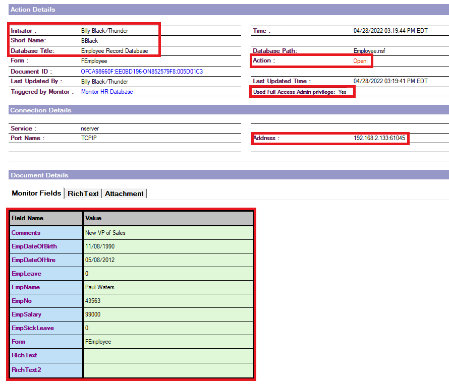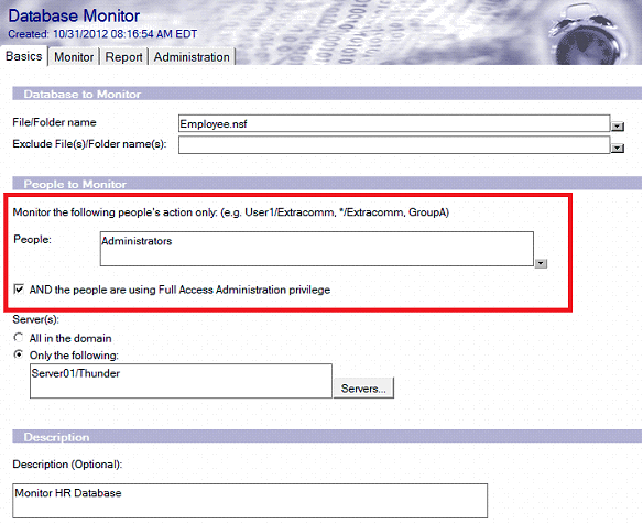 - Log Full Access Administration activity in Mail databases, Domino application databases as well as the Domino Directory for Create, Open, Update & Delete actions.